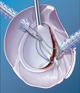 Kann der Riss nicht arthroskopisch genäht werden, muss auf ein offenes Verfahren ausgewichen werden, wobei die refixierbaren Risse in der Regel gut arthroskopisch rekonstruiert werden.